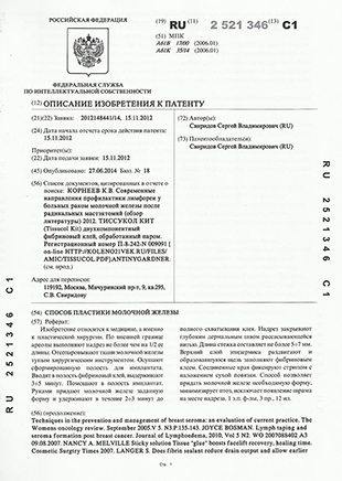 - На эту методику доктору Сергею Владимировичу Свиридову выдан патент.